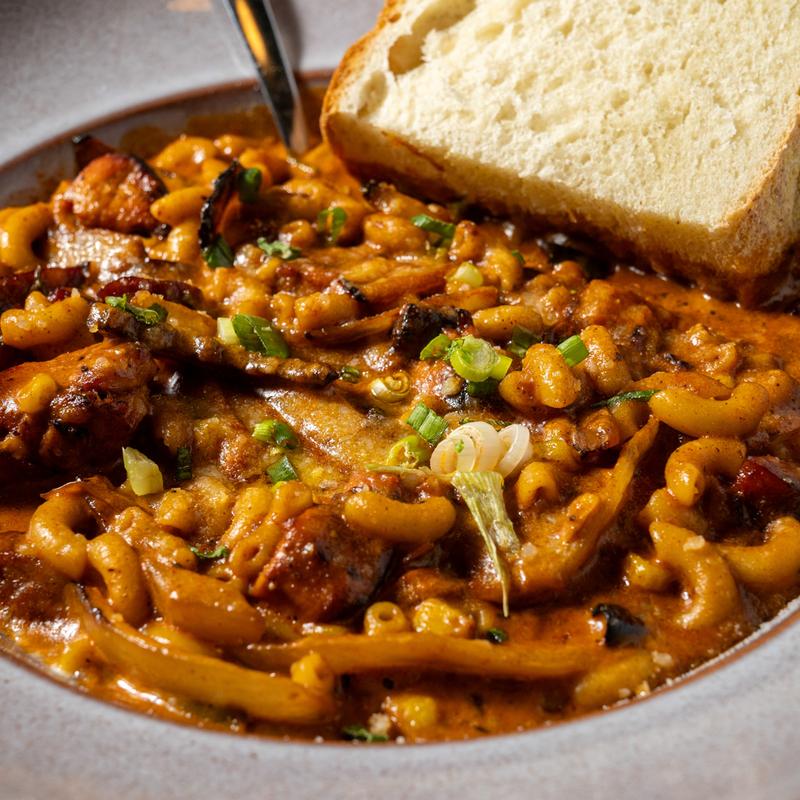 Onions, peppers, tomatoes, corn, cajun sausage, and chicken with elbow macaroni in a cajun cream sauce. Served with Cuban bread | Add Shrimp +$2